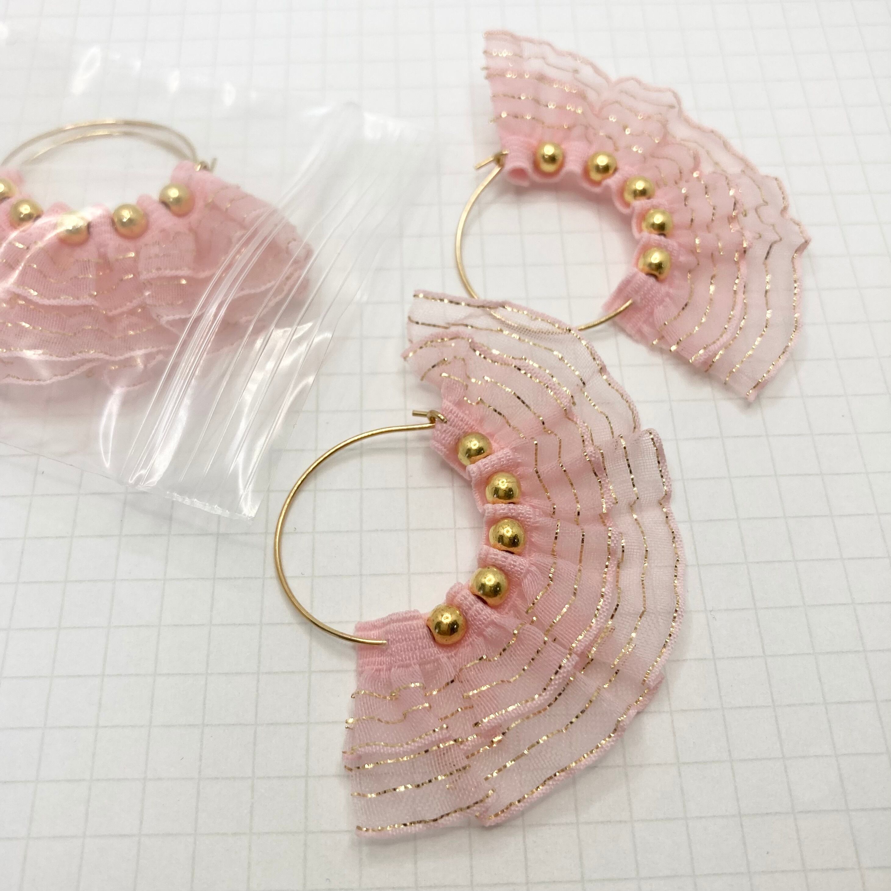 FEPI フリルリボン フープチャーム ピンク / 4piece / 5cm