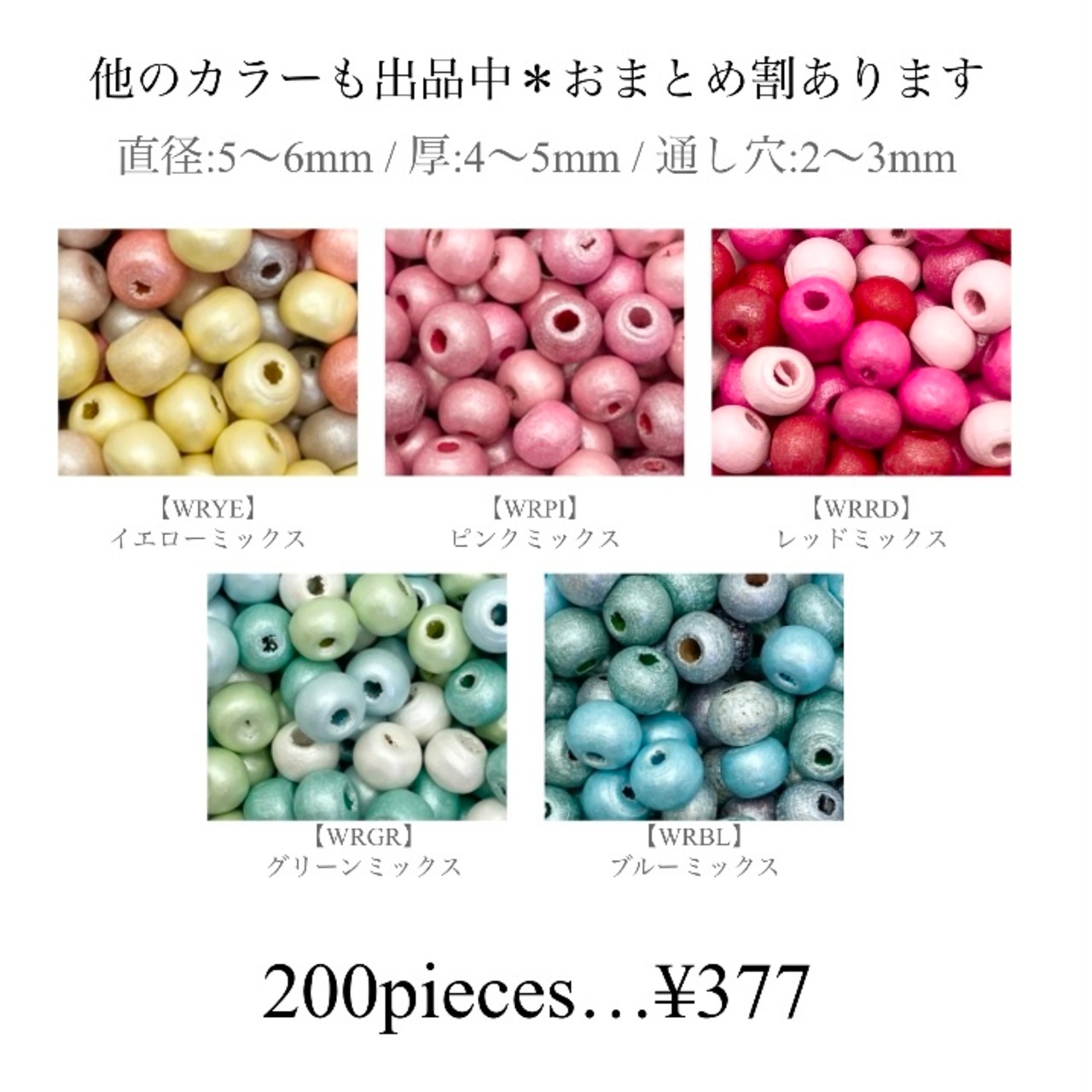 WRRD ウッドビーズ ラウンド レッドミックス / 200piece / 5mm